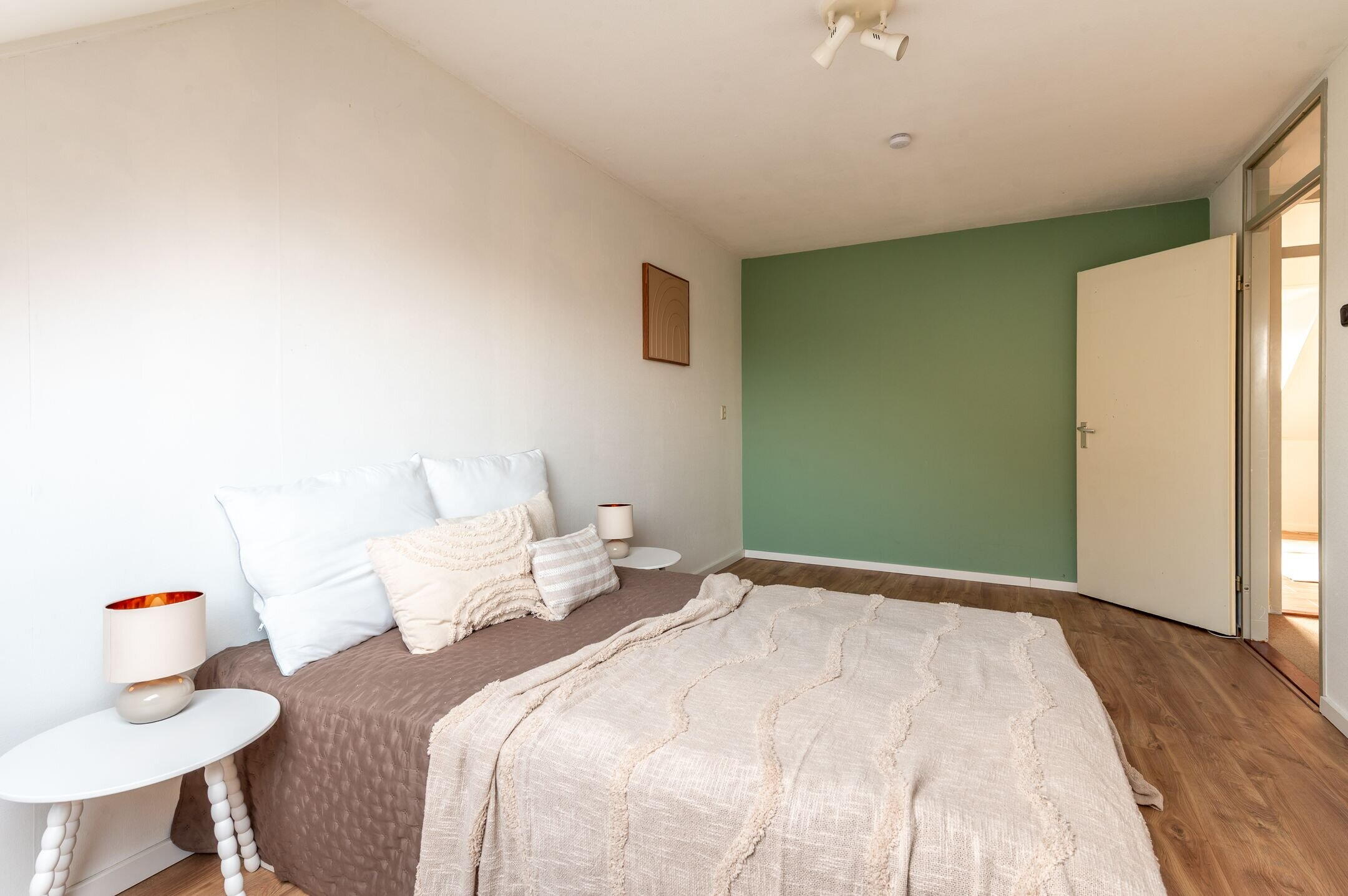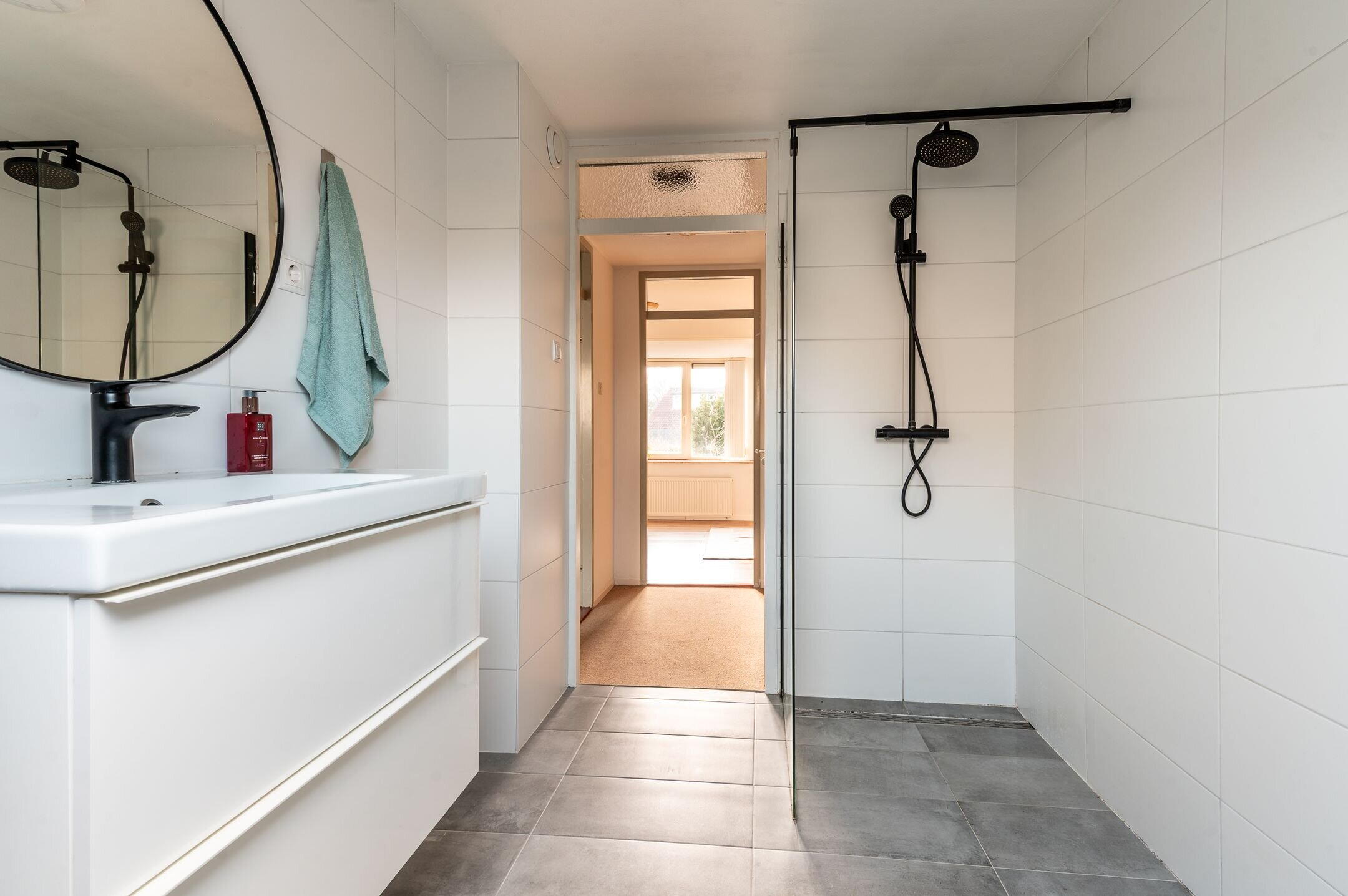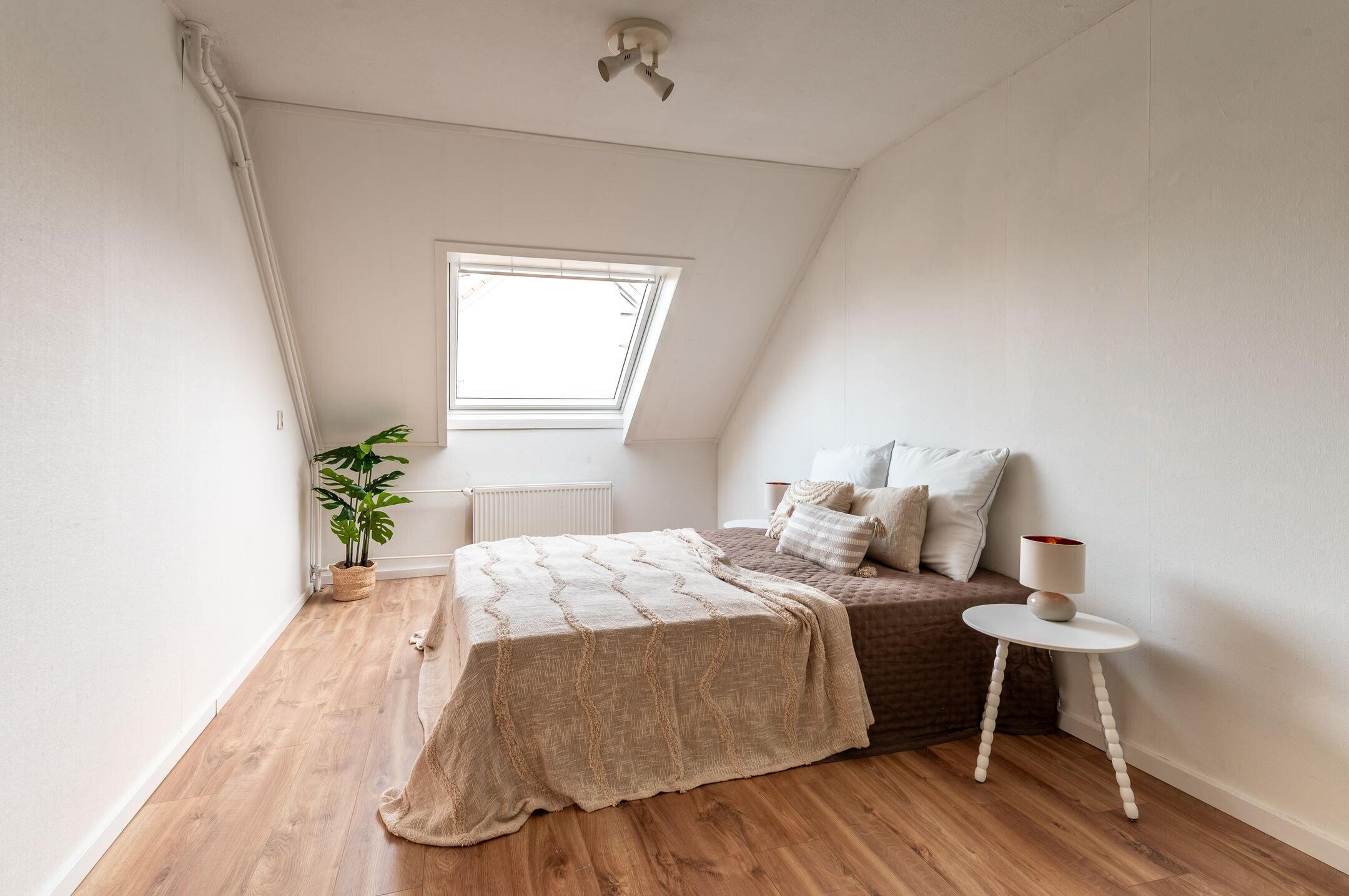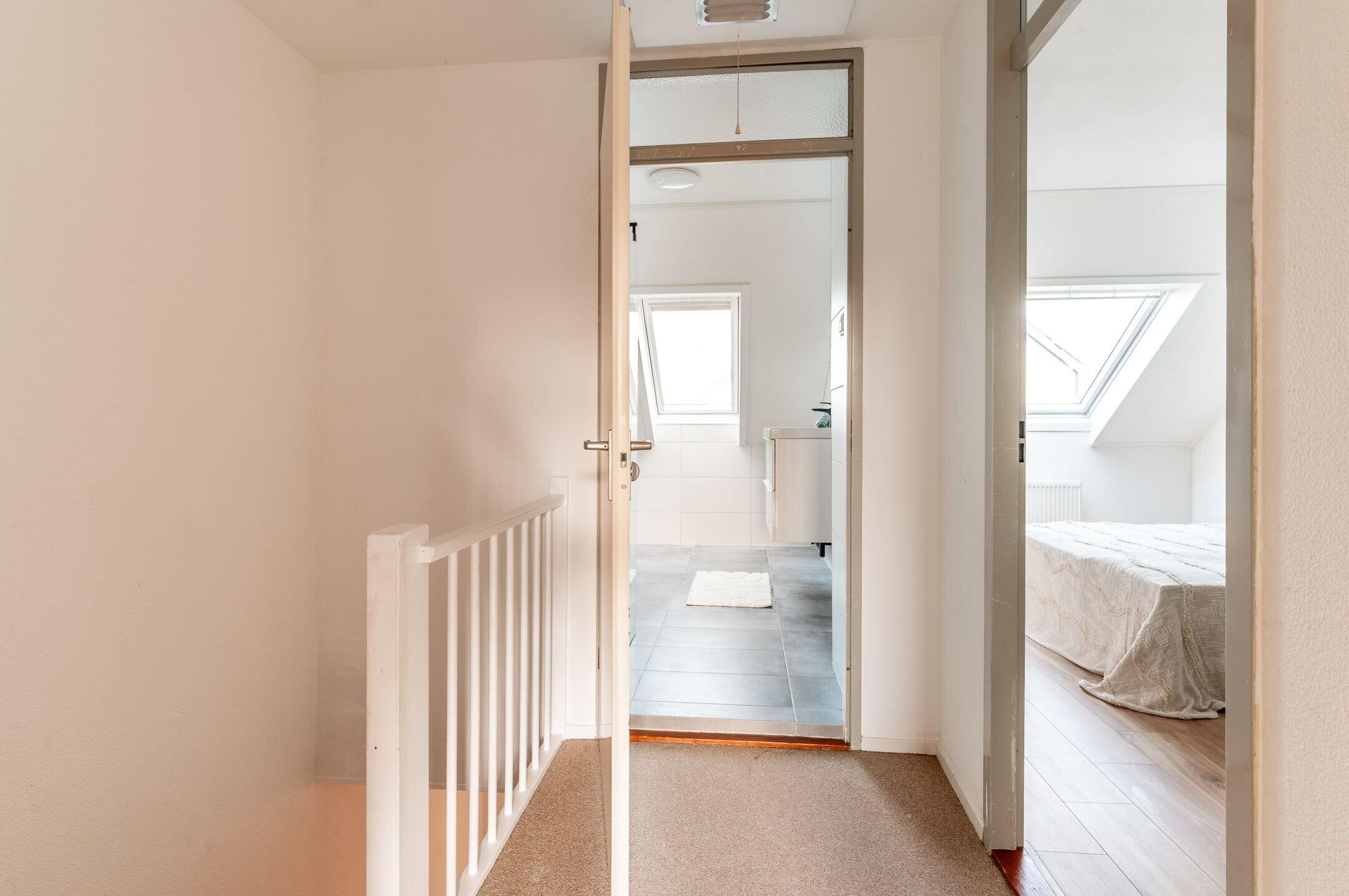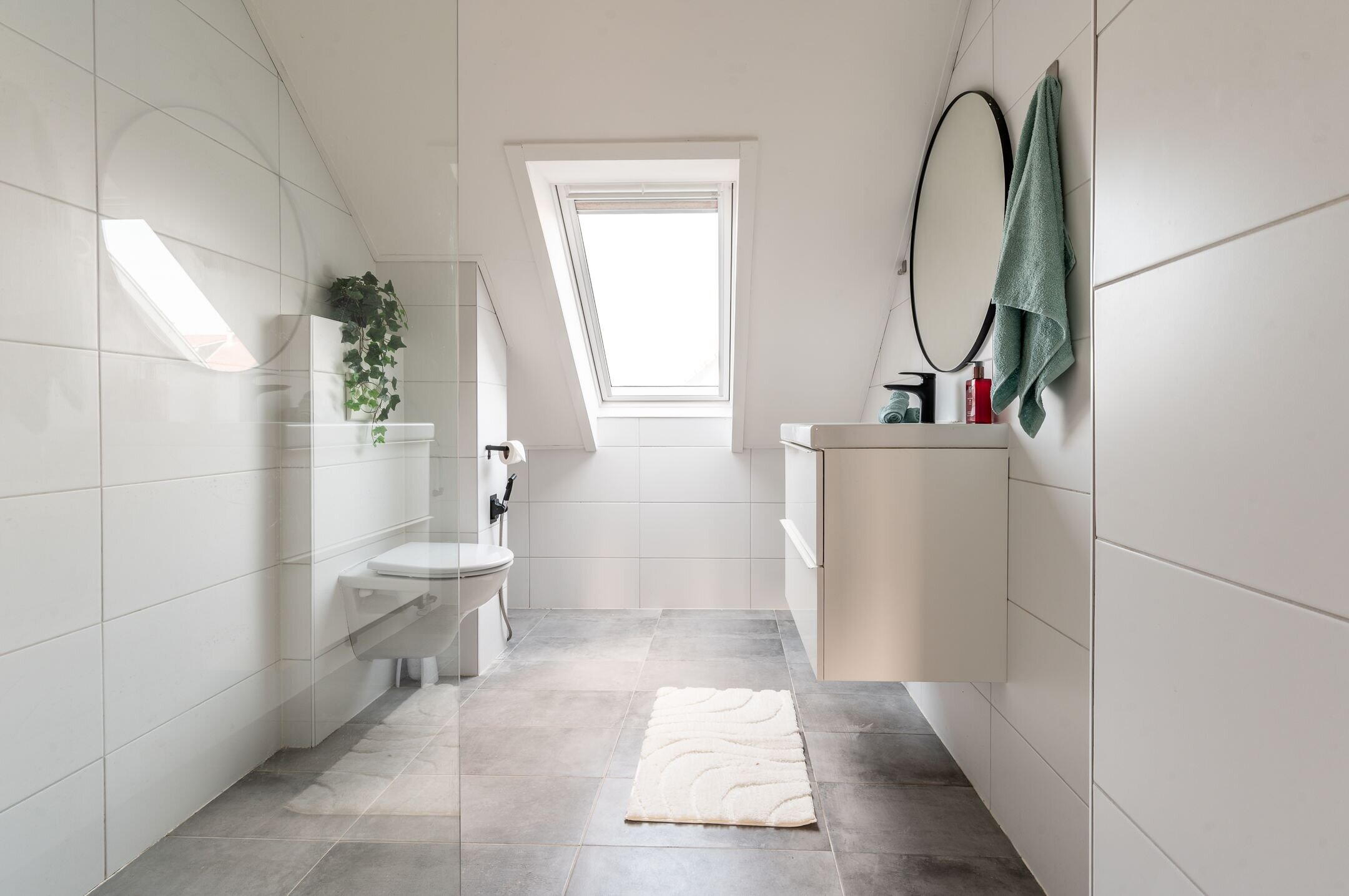 Eerste verdieping: Overloop met bergkast; twee ruime slaapkamers van respectievelijk 13,5- en 15,3m², waarvan de grootste is voorzien van een dakkapel en de kleinere van een dakraam; luxe betegelde en in 2022 vernieuwde badkamer welke is voorzien van een wastafelmeubel met spiegel, een ruime douchehoek, een hangend toilet en een dakraam.